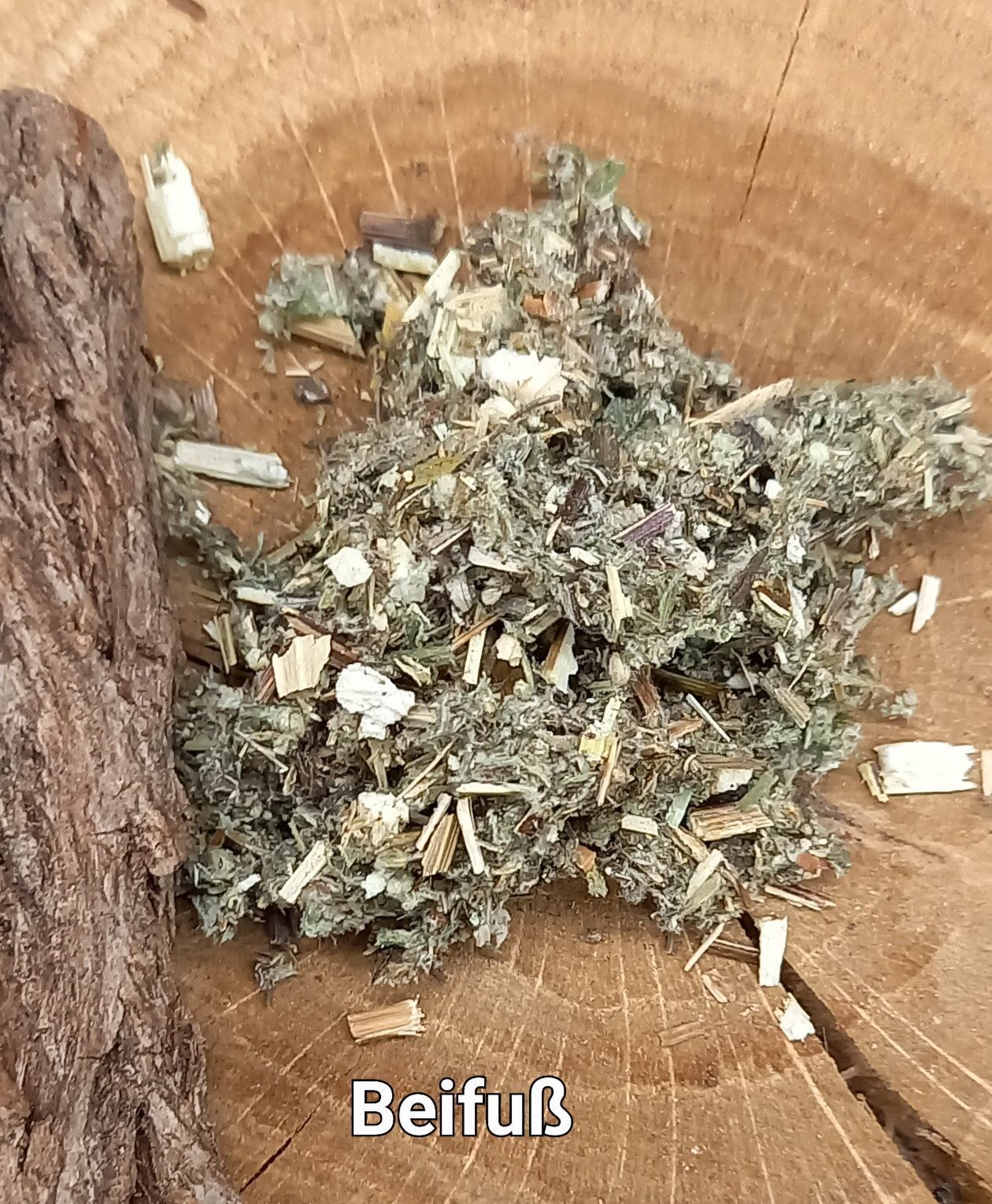 Beifuß , ich liebe Beifuß... erkennt man an meinem langen Text. Aber es gibt so viel über ihn zu erzählen... Jeder kennt es das Kraut für den Gänsebraten. Aber es hält sehr viel mehr für uns bereit. Ich habe meine ganz persönlichen Erfahrungen mit diesem Kräutlein gemacht. Seit diesem Tag/Nacht weiß ich, wieviel Kraft in einer Pflanze stecken kann und genau deswegen liebe ich Beifuß. Gerne erzähle ich dir meine Geschichte bei einer Kräuterwanderung. Unsere Vorfahren glaubten an die wundersame Kraft des Beifuß . Sie verwendeten Wermut als Badetuch. Wenn sie fischen gingen, nahmen sie Bündel Beifuß mit, um sich vor Wassermännern und Nixen zu schützen. Der Beifußrauch wurde zum Räuchern der Hütten und der Stallungen (Kuhställe, Scheunen) verwendet. Man glaubte, dass der Beifuß böse Geister abwehrt, den bösen Blick und Verderb abwehrt und Fruchtbarkeit verleiht. Beifuß gehört zu den Johanniskräutern und ist eine Brautpflanze. Man flicht zur Sonnwendfeier einen Gürtel aus Beifuß ( den trug sogar Thor schon), den man trägt und anschließend ins Sonnwendfeuer wirft. In der Glut sollen alle bösen Einflüsse verbrennen und Gesundheit für ein Jahr beschert werden. Müde Wanderer werden wieder munter, wenn sie in ihre Schuhe Beifuß Blätter legen. Wer Beifuß im Haus hat, dem kann der Teufel nichts anhaben. Der jugendlich-verführerischen Göttin Artemis geweiht, dienten seine Zweigt im Altertum für die Herstellung von Liebeszaubern, dabei wurde mit Beifuß geräuchert, was eine euphorische und stimulierende Wirkung auslöst. Alle Beifuß- und Edelrauten-Arten sind magische Kräuter, die niemals mit Hexen in Verbindung gebracht, sondern immer nur weißmagisch verwendet den. Als Beigabe im Räuchermittel sind sie ein wirksamer Schutz gegen alle Mächte der Finsternis. Die Wurzel des Beifußes wurde als Amulett getragen, um die Kraft zu verstärken. Ein mit Beifuß gefülltes Kissen soll zu Wahrträumen verhelfen. Selbst bei Astralreisen soll Beifuß Unterstützung bieten. Als Räuchermittel soll Beifuß bei Weissagungen helfen. Mit Beifuß-Tee wurden Kristallkugeln und andere magische Gerätschaften gereinigt. Der Beifuß ist in Europa, Asien und Nordamerika heimisch. Er gedeiht auf kargen Böden und wächst häufig an Wegrändern, Bahndämmen, Böschungen und anderen verwilderten Stellen. Der Beifuß ist eine mehrjährige Pflanze, die meistens von Jahr zu Jahr größer wird. Er wird bis zu 2 m hoch und hat einen harten Stängel mit vielen Seitenausläufern. Der Stängel ist meistens braun bis rötlich. Seine doppelt gefiederten Blätter sind auf der Oberseite dunkelgrün und auf der Unterseite weißlich und filzig. Die unauffälligen Blüten sind klein und grau-gelb. Überhaupt ist die ganze Pflanze trotz ihrer Größe sehr unauffällig. Dabei war das Beifuß Kraut früher eine der wichtigsten und heiligsten Heilpflanzen. Der Beifuß ähnelt auch seinem Bruder, dem Wermut, ist aber lange nicht so bitter. Der einjährige Beifuß, ein naher Verwandter des europäischen Beifußes, hilft selbst in schweren Fällen gegen Malaria. Die Beifuß-Ambrosie ist eine entfernte Verwandte des Beifußes. Sie ist ein gefürchteter Allergie-Auslöser. Beifuss-Ambrosie kann sogar die generelle Neigung zu Allergien aktivieren. Beifuß wirkt appetitanregend, verdauungsfördernd Obwohl das Beifuß Kraut ein breites Anwendungsspektrum hat, sind seine Heilwirkungen fast in Vergessenheit geraten. Wie der Name schon andeutet, wirkt er lindernd bei Beinen und Füßen, die von langen Wanderungen müde sind und weh tun. Dazu kann man ein Öl mit dem Beifuß Kraut ansetzen, mit dem man bei Bedarf Füße und Beine einreibt. Solch ein Öl kann auch bei Rheumatismus lindernd wirken. Da er entspannend auf das Nervensystem wirkt, kann man ihn auch bei Nervosität und Schlafstörungen einsetzen, z.B. als Tee vor dem Schlafengehen oder indem man Blüten und Blätter in ein Kissen einnäht und mit ins Bett nimmt. Zusammen mit Baldrianblüten und Lavendel hat solch ein Kissen ( Unkrautladen!!!!) einen beruhigenden Wohlgeruch. Inhaltsstoffe Ätherisches Öl, Bitterstoffe, Inulin, Vitamin A, B, C, Gerbstoffe, Thujon Beifuß kann auch zur Herstellung eines Schutzöls verwendet werden. Nehmen Sie Beifuß öl und mischen Sie es mit anderen Ölen (z.B. Mandelöl, etc.) im Verhältnis 1:1. Bevor Sie das Haus verlassen, tragen Sie das Öl auf die biologisch aktiven Punkte auf: Schläfen, Handgelenk, Hinterhauptbein, Jugularfurche, drittes Auge. Durch das Auftragen des Schutzöls auf diese Punkte wird ein Schutz gegen negative Einflüsse geschaffen. Und es ist nicht nur der Beifuß selbst. Man geht davon aus, dass ätherische Öle einen ausgezeichneten Schutz gegen fremde negative Emotionen darstellen, da sie ein Feld erzeugen, das die Energiesphäre einer Person abdeckt. Außerdem erhöhen die ätherischen Öle die Sensibilität für die Energie anderer Menschen. Sie werden in der Lage sein, einem Gespräch mit einer unangenehmen Person aus dem Weg zu gehen, weil Sie die vom Feind ausgehende Negativität spüren werden. In der Magie ist der Beifuß daher ein Talisman. Wenn man einen Zweig dieser Pflanze über die Eingangstür hängt, vertreibt er die bösen Mächte und schützt die Wohnung. Ein Beifußsud, der dem Wasser zugesetzt wird, kann zur Reinigung des Fußbodens verwendet werden. Dies ist eine gute Art, den Boden zu reinigen, aber es hilft auch, schädliche Keime abzutöten und den Raum von Negativem zu befreien. In der Frauenheilkunde wirkt Beifuß Tee vor allem durch seine erhitzenden und anregenden Eigenschaften. Er wirkt menstruationsfördend bei schwacher Periode (Achtung! In der Früh-Schwangerschaft nicht verwenden, da er Fehlgeburten auslösen kann). Da er auch entkrampfend wirkt, hilft er auch gut bei schmerzhafter Periode. Mit seinen wärmebildenden Eigenschaften wirkt er gut bei Unterleibs- und Blasenkatarrhen, chronischen Eierstockentzündungen und Ausfluss. Um ihn hier zur vollen Wirkung 