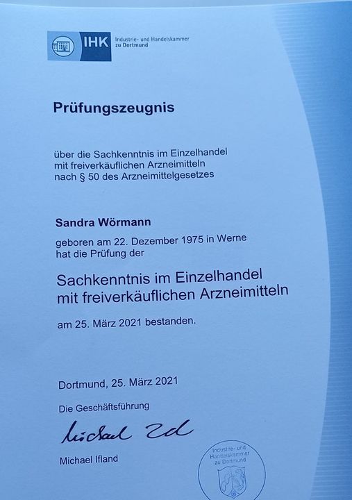 Apothekerschein der IHK gemacht